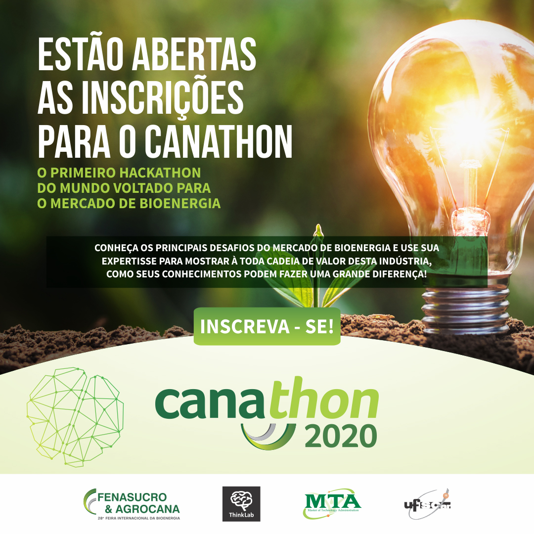 Estão abertas as inscrições para o Canathon, primeiro hackathon voltado para o mercado de bioenergia, que será realizado online de 20 a 23 de agosto. A iniciativa, criada pela feira Fenasucro & Agrocana e a Think Lab, com o apoio do curso Master of Technology Administration (MTA) em Gestão Industrial Sucroenergética, oferecido pelo Departamento de Tecnologia Agroindustrial e Socioeconomia Rural do Campus Araras (DTAiSeR-Ar) da UFSCar, envolverá especialistas de diversas áreas na busca por soluções sustentáveis e inovadoras em desafios ligados a gestão, produção e novas economias.
