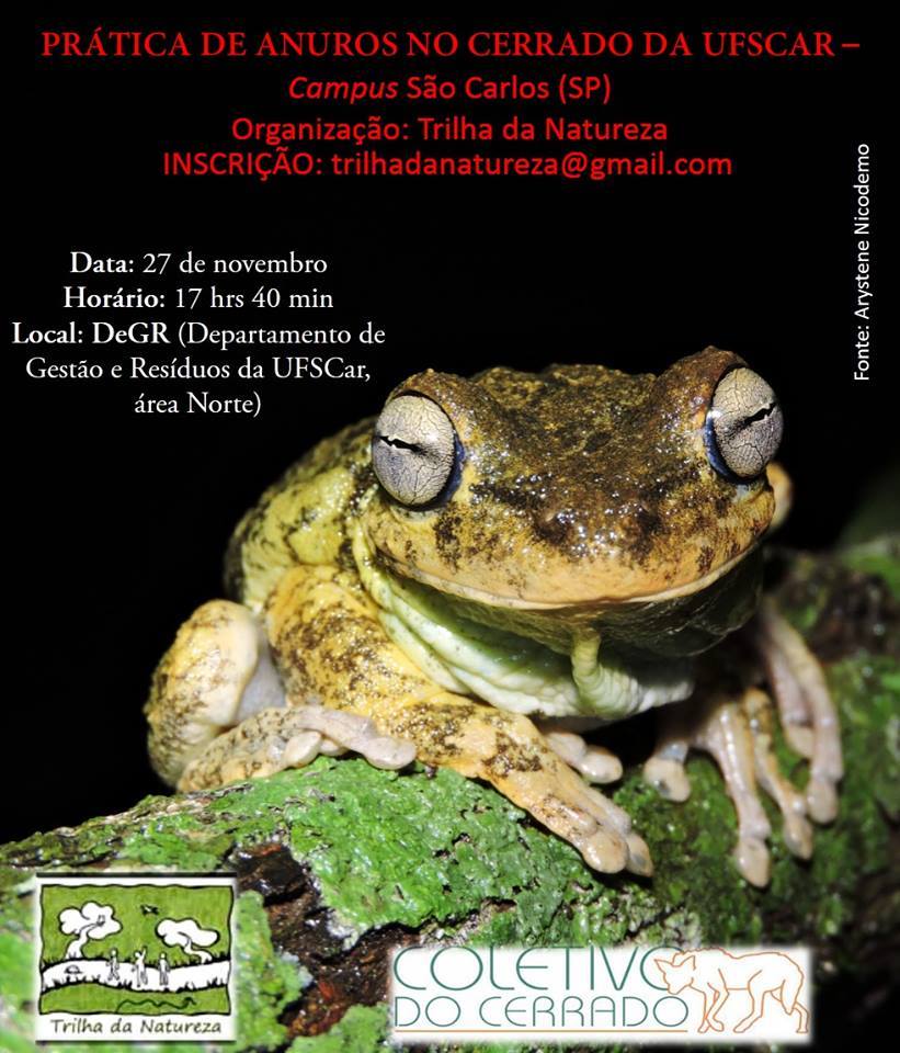 O Projeto Trilha da Natureza promove no próximo dia 27 de novembro, a oficina intitulada Práticas de Observação de Anuros (sapos, rãs e pererecas) no Cerrado da UFSCar. A atividade é gratuita e aberta a todos os interessados.